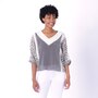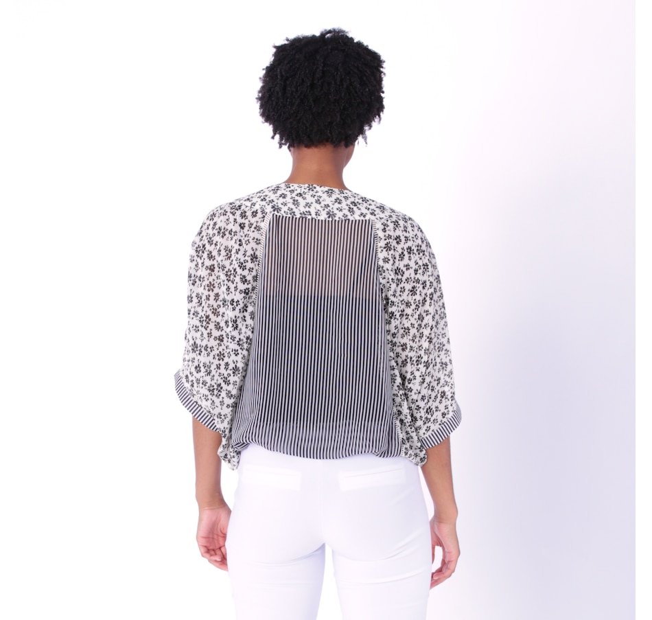 Add something eye-catching and versatile to your look wearing this blouse with sleeve and neckline detail from Orange Fashion Village.