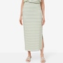 Elevate every ensemble in versatile, colourful style wearing this bamboo striped long skirt with side slit Kim & Co.
