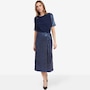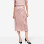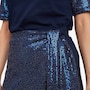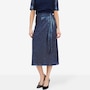 This calf-length midi-length wrap skirt is made with flowy soft sequined fabric on the front and cotton jersey on the back. It ties at the waist for a flattering hourglass silhouette. It finishes with the upcycled Preloved red heart patch on the back, and is made in Canada.