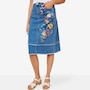 Diane Gilman New Classic Stretch Embellished Denim A-Line Skirt with Frayed Hem