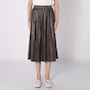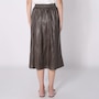 Elevate your fall look in beautiful style wearing this stylish faux leather pleated midi skirt from Modern Identity.