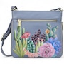 Available in a trio of different hand painted patterns and colours, you'll accessorize every look in elevated style with this beautiful expandable travel crossbody from Anuschka.