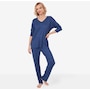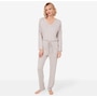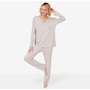 This pyjama set from N Natori is a lightweight, ultra-soft essential. The v-neck top features a dropped shoulder, and the pant has an adjustable drawstring . This set fits easy and away from your body, and is made of a breathable soft fabric that will keep your body cool.