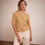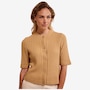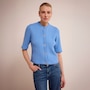 This cable stitch cardigan is a timeless piece that effortlessly combines comfort and style. It feels warm and smooth, making it perfect for crisp autumn days. The classic cable knit pattern gives it a rich texture and a handcrafted look, while the colours camel and cornflower add both warmth and freshness to your wardrobe. The relaxed fit and button closure make the cardigan versatile and easy to wear, both open or closed. Wear it over a blouse, dress, or basic top for a layered look with character. This cardigan is an essential classic with a contemporary twist.