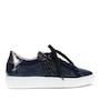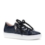 Orissa Footbed Sneaker in Quilted Embossed Calf with Patent Trim. Front Laces with Outside Zipper. Featuring a Full Removable Footbed with Arch and Metatarsal Support. Anti-Slip Rubber Sole. Made in Italy.
