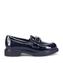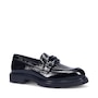 Annora Loafer in Soft Patent. Chain link Detail. Unique 5mm Gel injected Foam Cushioning. Anti-Slip Rubber Sole. Made in Italy.