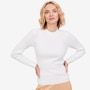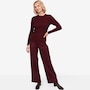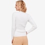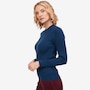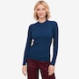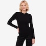 This jewel neck rib sweater has novelty rib detail and fully fashioned marks. This style is ideal under a blazer and matches up tonally to Badgley Mischka's tweed, faux suede bottom, and the faux leather skirt. This is also a great item on its own, and can be worn year-round as a transitional layering piece.
