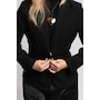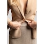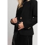 The Halle from Katherine Karambelas is a single breasted one-button blazer that is lined and features shoulder pads. It finishes with gold matte buttons, a cinched waist detail and notch lapels.