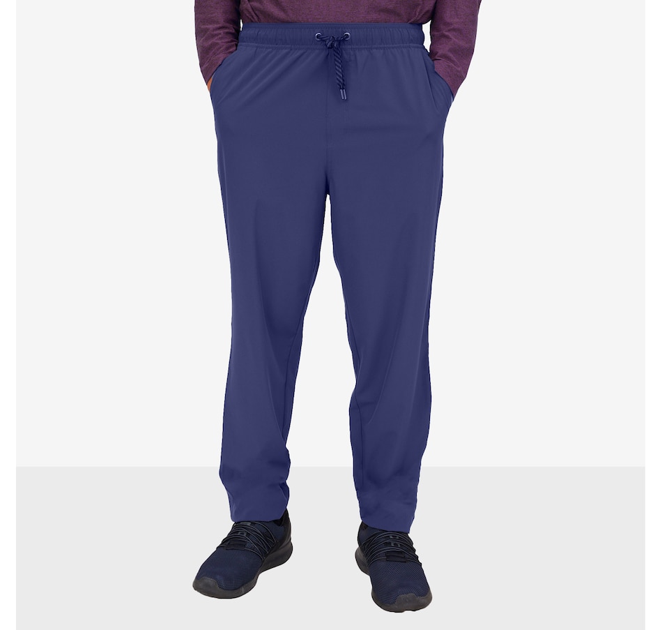 This men's Premiere pant from Skechers has an elastic waistband with drawstring, front slash hand pockets and a back zipper security pocket. It finishes with a built-in liner.