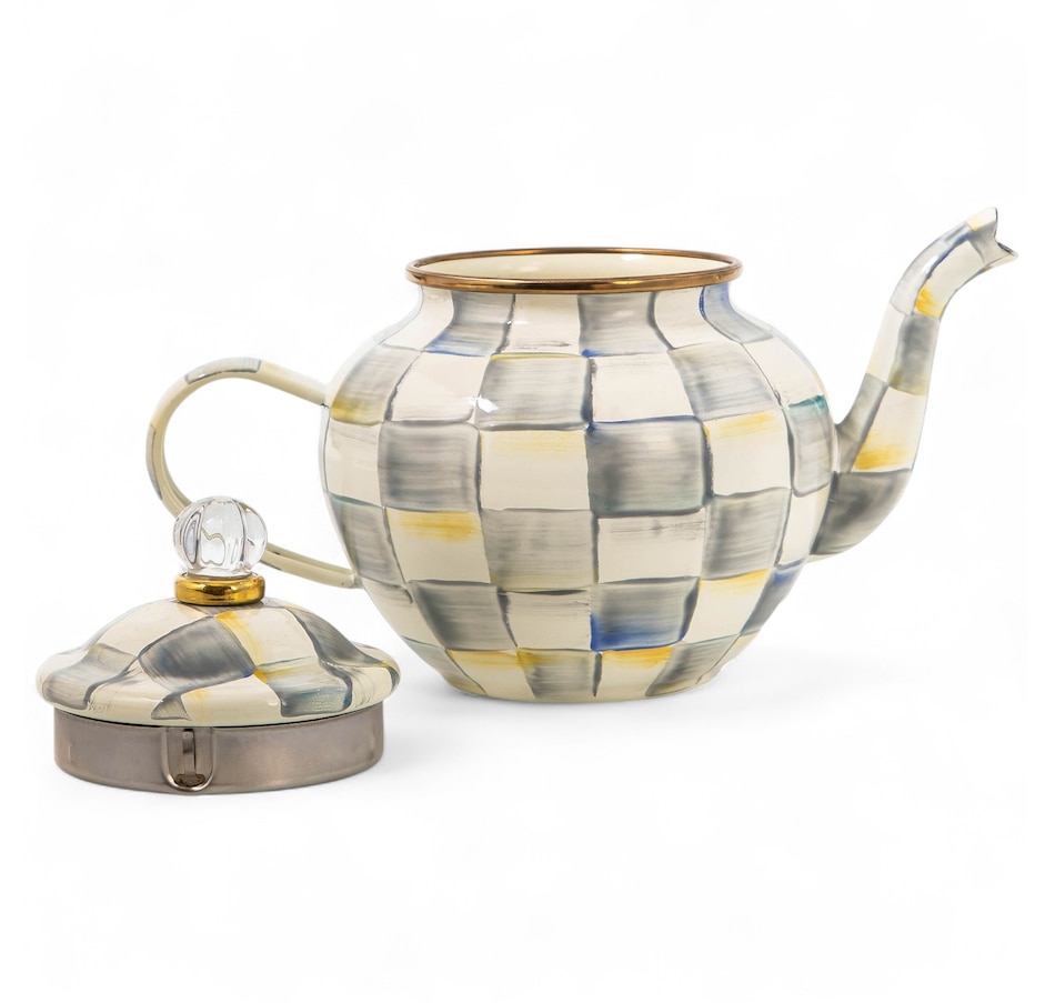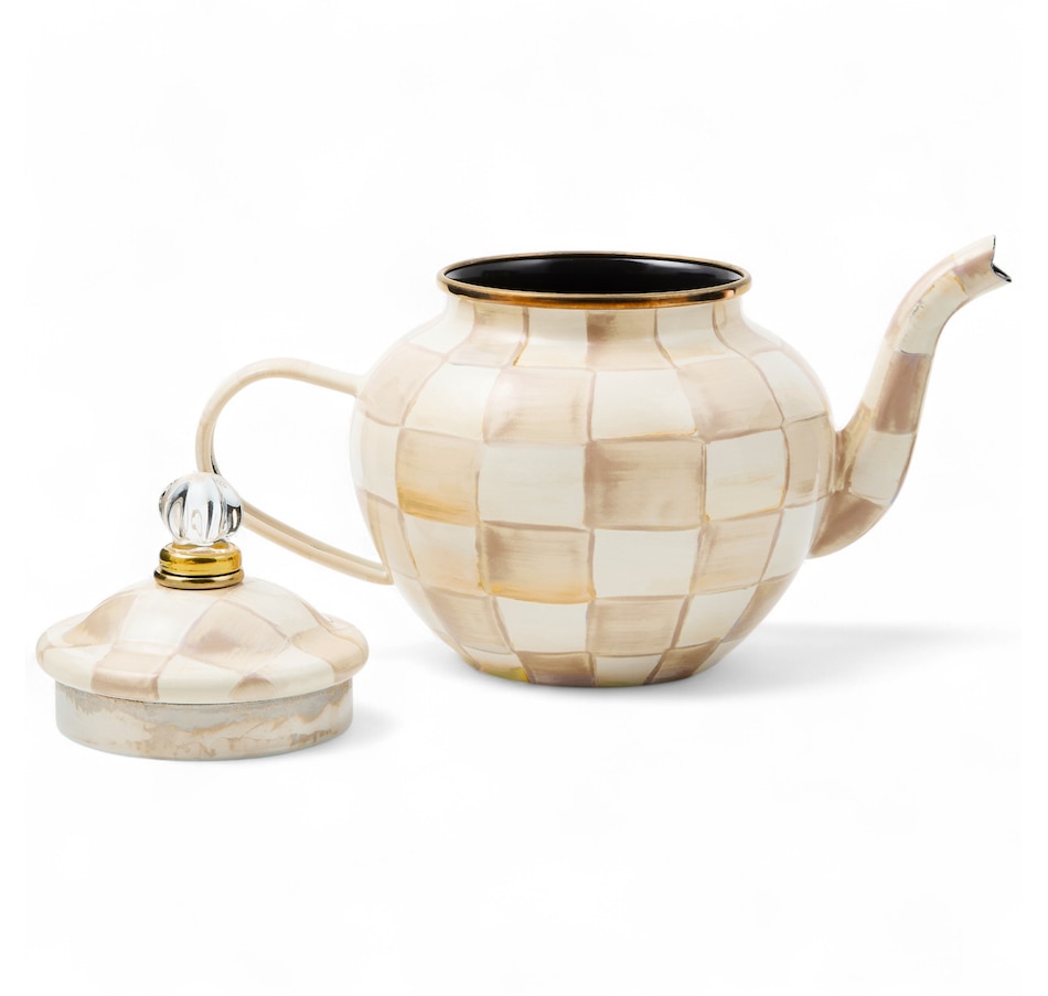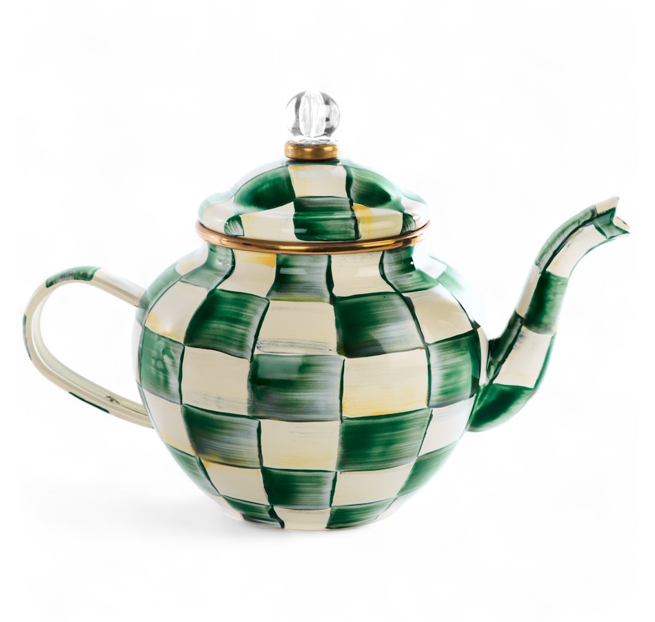 With this four-cup teapot, the hand-painted enameled steel is shaped into an adorable little form: sized just right for English Breakfast in the morning with the newspaper, Earl Grey in the afternoon with a baked treat, or chamomile in the evening with the book you just can't put down! Please note, each piece may vary due to the handmade nature of each product.