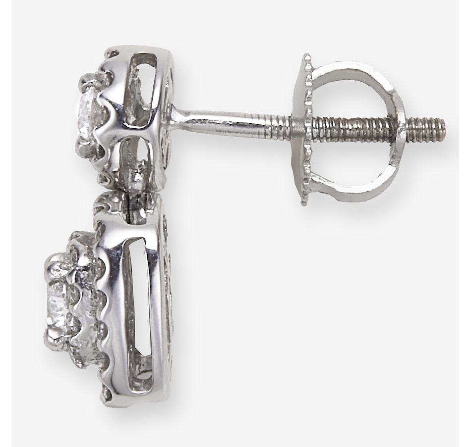 These earrings showcase the radiant brilliance of faceted diamonds arranged in a polished, sculptural design. The prong‑set stones create eye‑catching sparkle across the profile, while the secure screw‑back posts offer comfortable and confident wear. Finished with detailed gallery backs, the pair brings elegant sophistication to any jewellery collection.