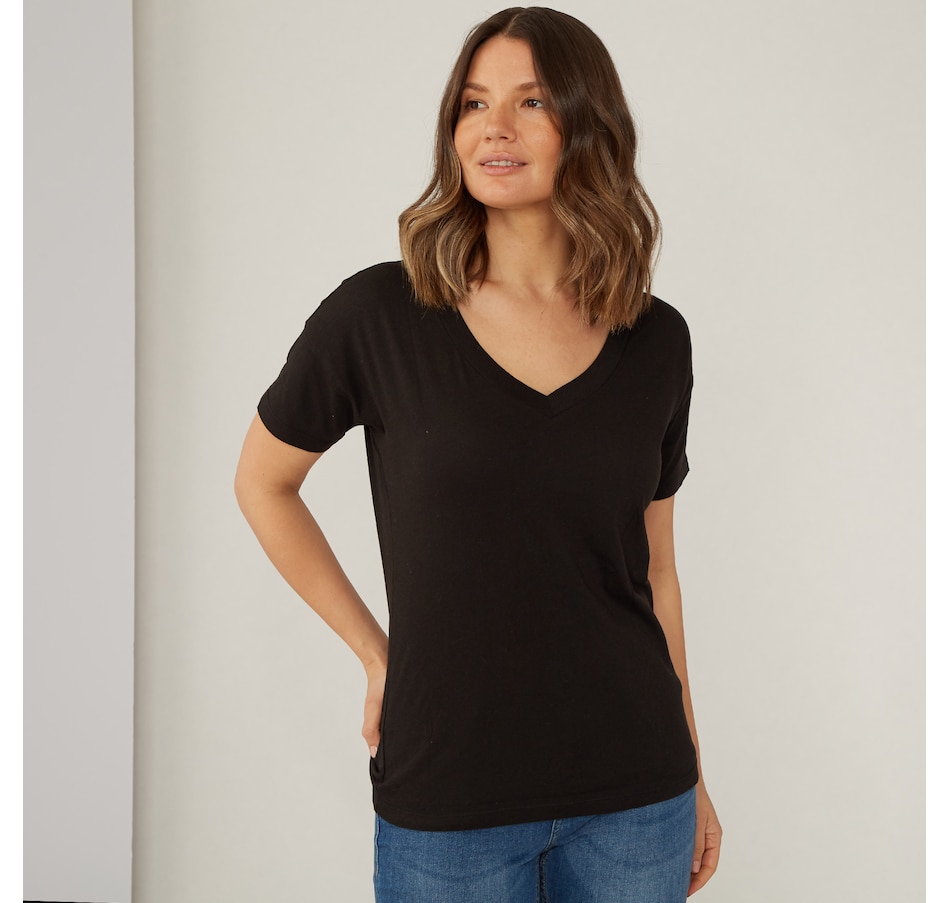 • Relaxed fit, short sleeve, V neck