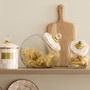 Greet friends with a batch of home-baked treats inside this cookie jar with a Rosy Check enamel lid. The glass body offers a preview of the tasty goodness in store, and the lid, hand-painted with colour-dragged checks in a range of rosy hues and topped with an elegant clear glass knob, lends signature style.