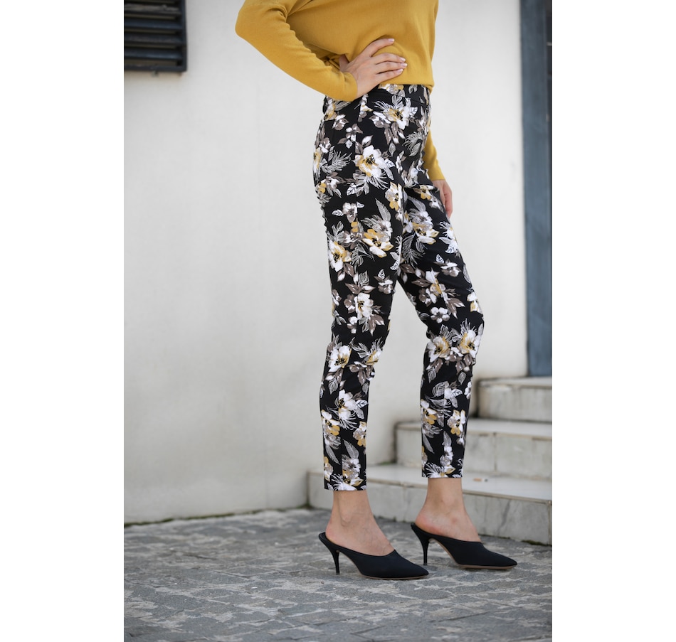 • Pull-on, mid-rise, contour waistband, semi-fitted