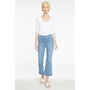 SpanSpring styles adapt to you and not the other way around. Made from their most expandable denim, which stretches up to three sizes and recovers with ease to its original shape, NYDJ's Fiona slim flared ankle pull-on jeans in SpanSpring denim have your curves covered, even when your body changes. They're also highly flattering thanks to their signature Lift Tuck technology, which uses a proprietary inner panel with a patented criss-cross design to flatten in front and lift in back. These fabulously comfortable and stretchy jeans feature an on-trend silhouette that's slim and fitted through the knee, then flared at the ankle-length hem. They finish with an effortless pull-on waistband, faux front pockets, a faux fly, and functional back pockets.