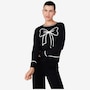 • Long-sleeve pull-on jacquard bow sweater with instant charm