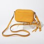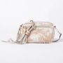 • Custom hardware, main entry with zipper, removable and adjustable crossbody strap, dome stud feet