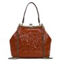 Compact and charming, the Laureana Frame from Patricia Nash is full of appealing features and texture. The perfect size for a night out, this sophisticated kiss lock clutch in buttery-soft leather makes a style statement for any occasion. Metal feet on the bottom help it to stand up straight and offer protection. It also includes a removable metal chain shoulder strap.