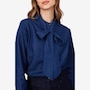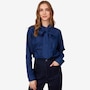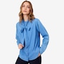 Centre your fall look in irresistible style wearing this denim bow tie shirt from Guillaume. Crafted with a medium weight denim, this classic button front shirt is updated with a neck tie that can be used as a bow for a bolder and feminine statement. Dyed-to-match stitching and button cuffs provide a tailored finishing touch.