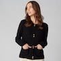 Centre all your ensembles in versatile style with this gorgeous lightweight knit gold button cardigan from Isaac Mizrahi!