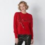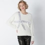 Add something sharp and eye-catching to your look wearing this eyelash sweater with its sequin oversized bow from Badgley Mischka.
