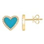 14K Yellow Gold Diamond & Turquoise Heart Earrings