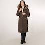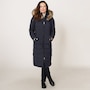 • Attached cord, tapered waist, and face framing fur trim provide flattering shape and style