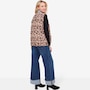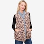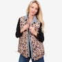 Cool days call for the cozy appeal of a warm puffer vest. This one is styled with a bold animal print for a fierce, fashion-forward touch. A contrasting placket and collar frames the look with a polished edge, adding structure to the playful pattern.