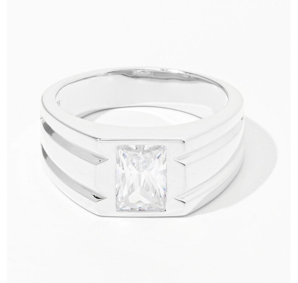 • (1) 9mm x 6mm straight baguette shape, bezel set and faceted Diamonelle (looks like 1.74 av. ctw of real diamonds)