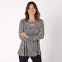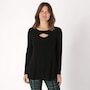 A little bit flirty and a little bit fun, you'll add something distinct and versatile to your look with this peek-a-boo top from Nina Leonard.