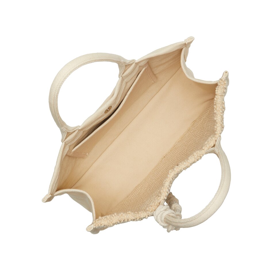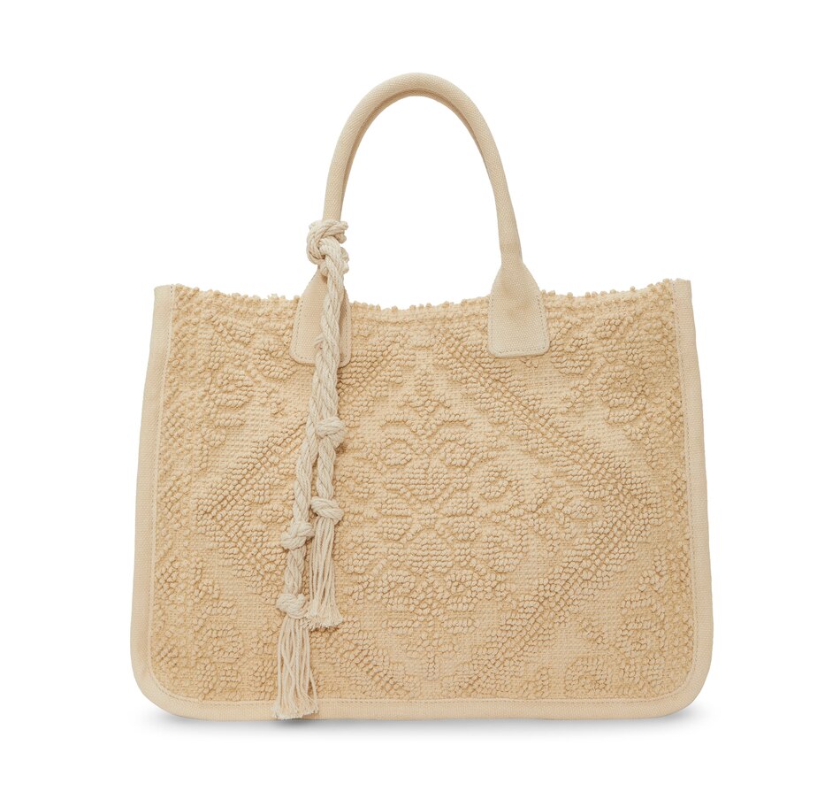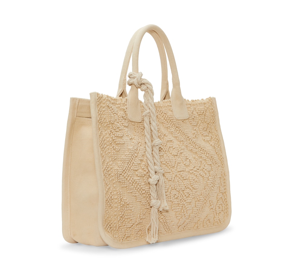 Knotted canvas in a beautiful warm vanilla shade make the Orla a casual and stylish tote with spacious interior and tassel accent.