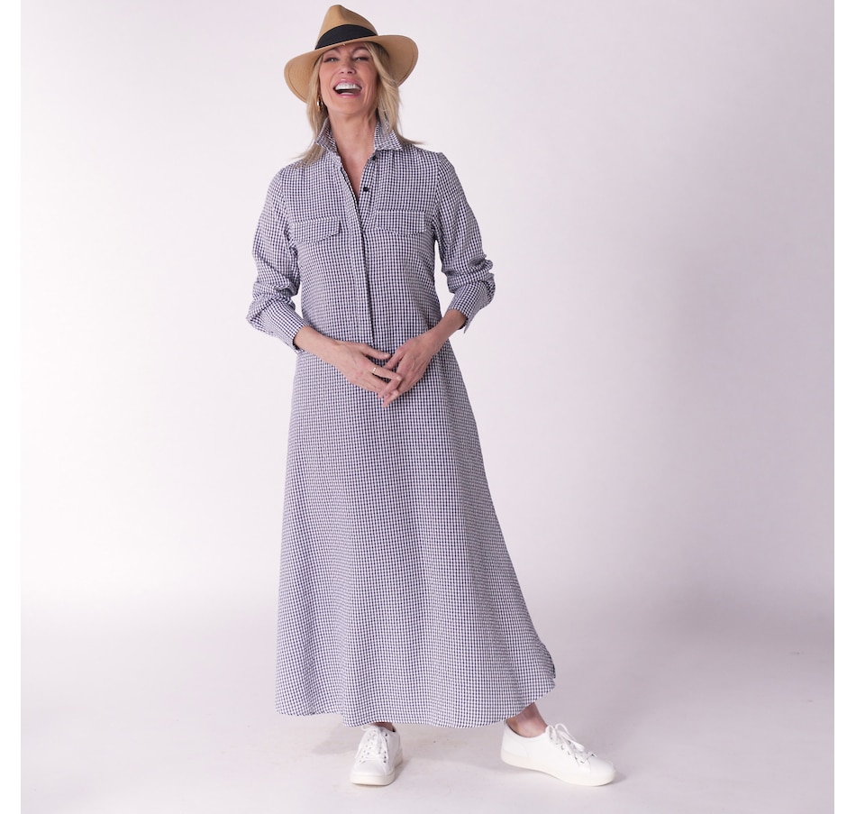 Add something classically beautiful to your wardrobe with this gingham shirt dress from Canada's own Brian Bailey.
