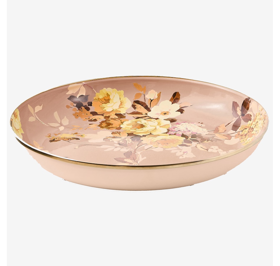 Add a versatile do-it-all piece to your kitchen and table. The Enamel Abundant Bowl handles serving in style. Its upturned edge is especially handy for presenting main courses that have a bit more sauce, like a heaping bowl of pasta.