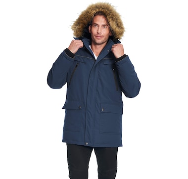 This men's down parka from Arctic Expedition features a removable faux fur trimmed hood and chest pockets in its design. Giving you needed protection form the elements, it is also water resistant, wind resistant, and easy to care for being machine washable too. Choose yours from a trio of great colours and centre your winter look in style.