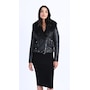 Finish your autumn look in undeniably cool style wearing this faux leather moto jacket from Molly Bracken.