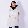This reversible swing coat from Nuage is designed with a stylish hood, is both water and wind resistant, and machine washable for easy care.