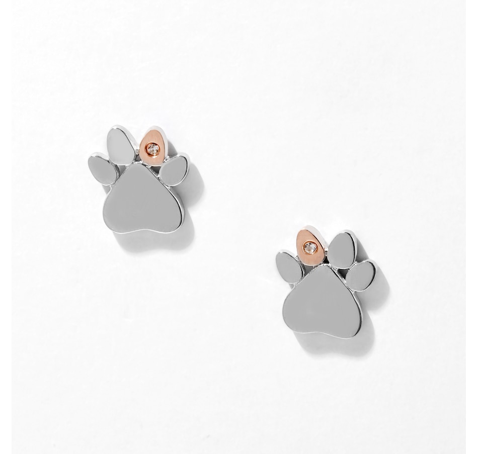 Sterling Silver And 10K Rose Gold Paw Print Stud Earrings