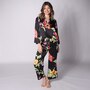 Get ready for luxurious, elevated comfort with this floral printed Malta stretch silky satin Mandarin collar PJ set from N Natori.