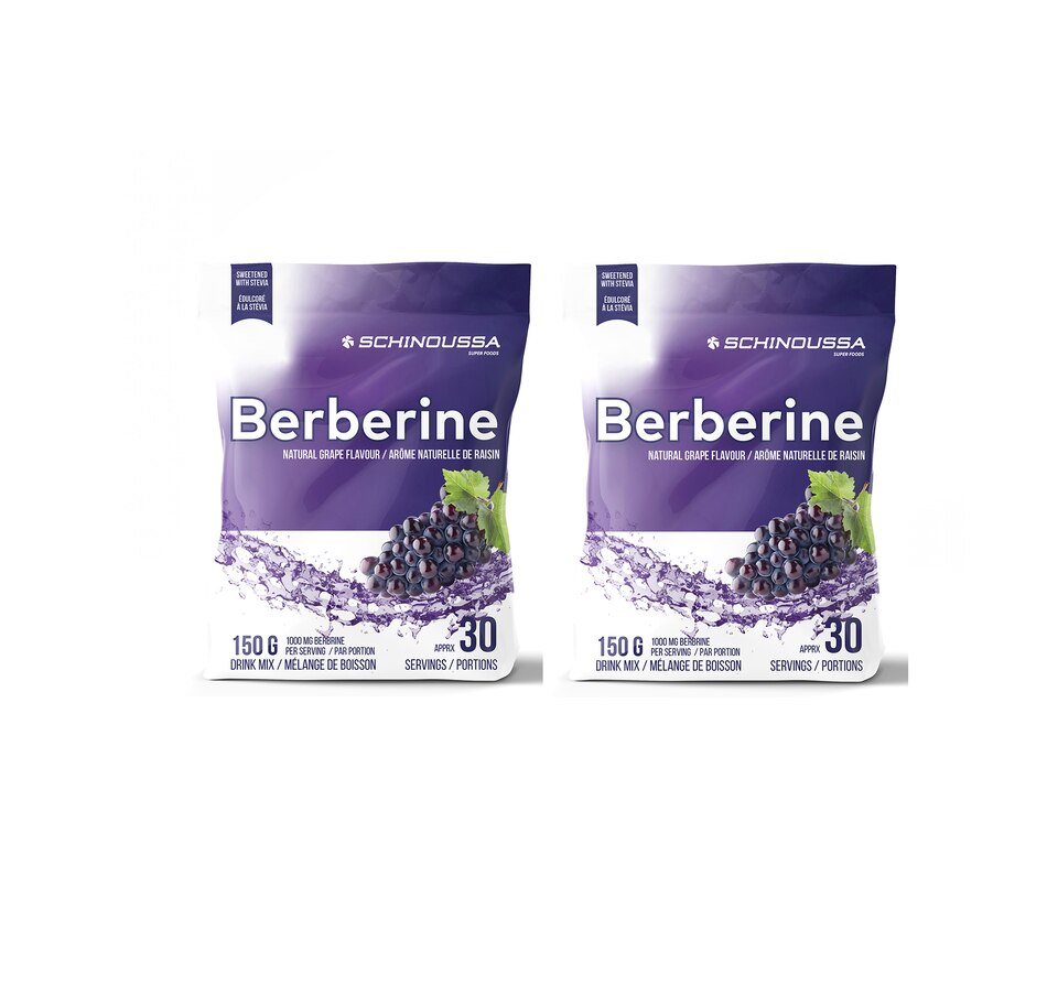 • (2) Schinoussa Berberine Natural Grape Flavour Drink Mix (150g)—valued at $34.99 ea.