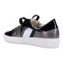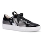Ophelia Footbed Sneaker in Weatherproof Metallic Embossed Calf with Mirror and Patent Trim. Fully Functioning Laces with Outside Zipper. Features a Full Removable Footbed with Arch Support. Includes two Sets of Laces: one Cotton and one Ribbon. Made in Italy.
