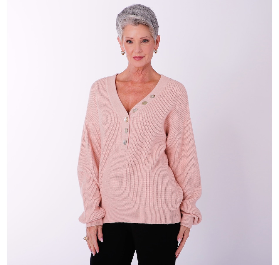 Versatile and classic, you'll centre every look in beautiful style wearing this v-neck sweater with pearlized buttons from Red Coral.
