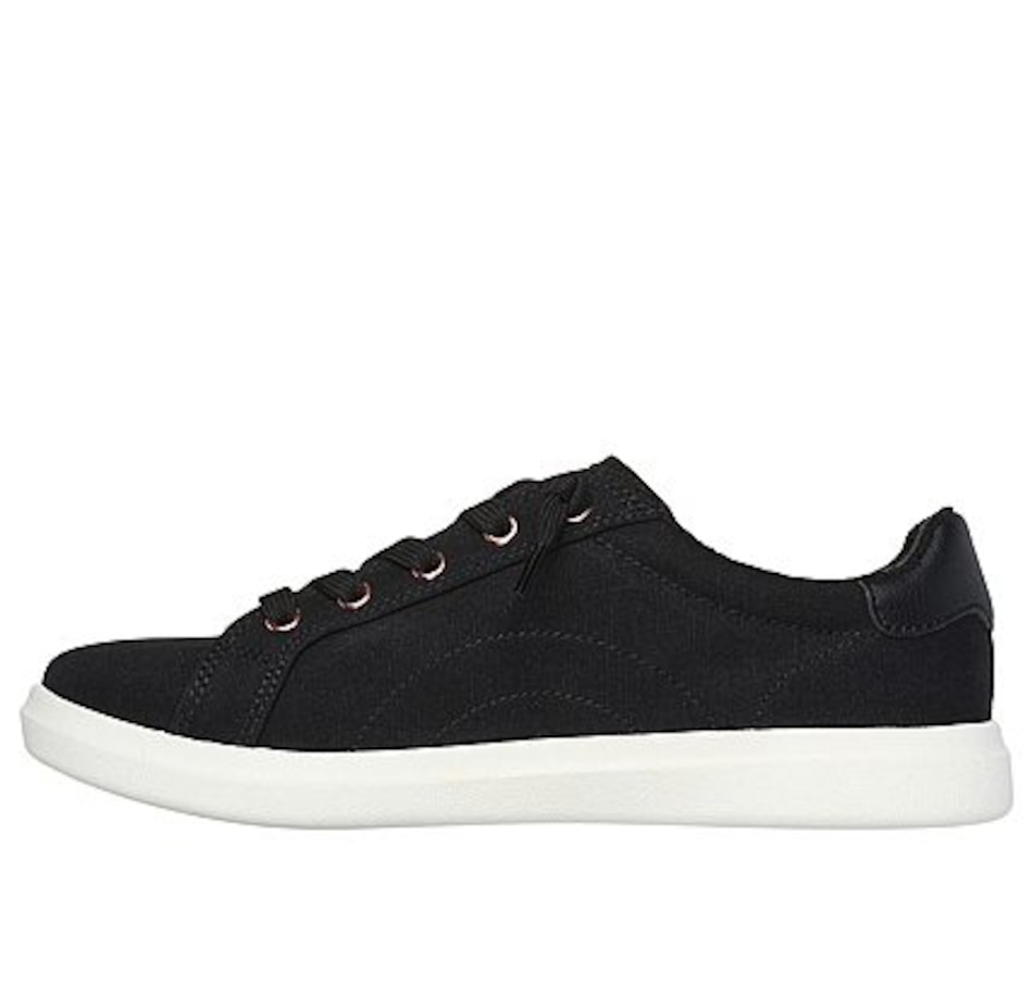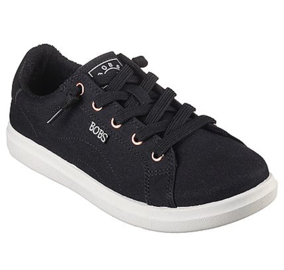 Cool casual style and easy wearing combine in Bob's from Skechers D'Vine. The solid-coloured vegan design features a canvas upper with terry lining, tied-off laces and a cushioned Skechers memory foam insole. For every Bob's purchase, a donation is made to animals in need.