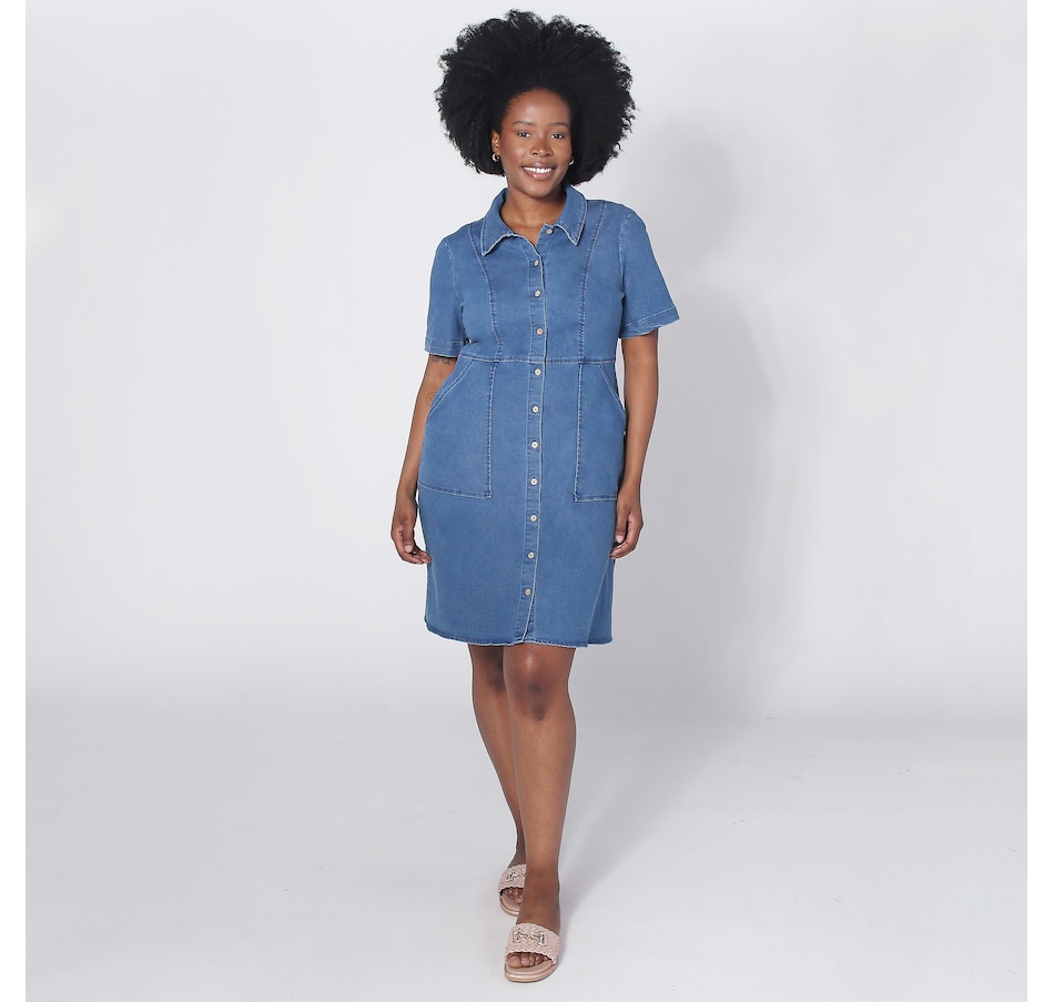 Available in a trio of great colours, you're going to love the look and versatility of this fabulous denim dress from Nina Leonard.