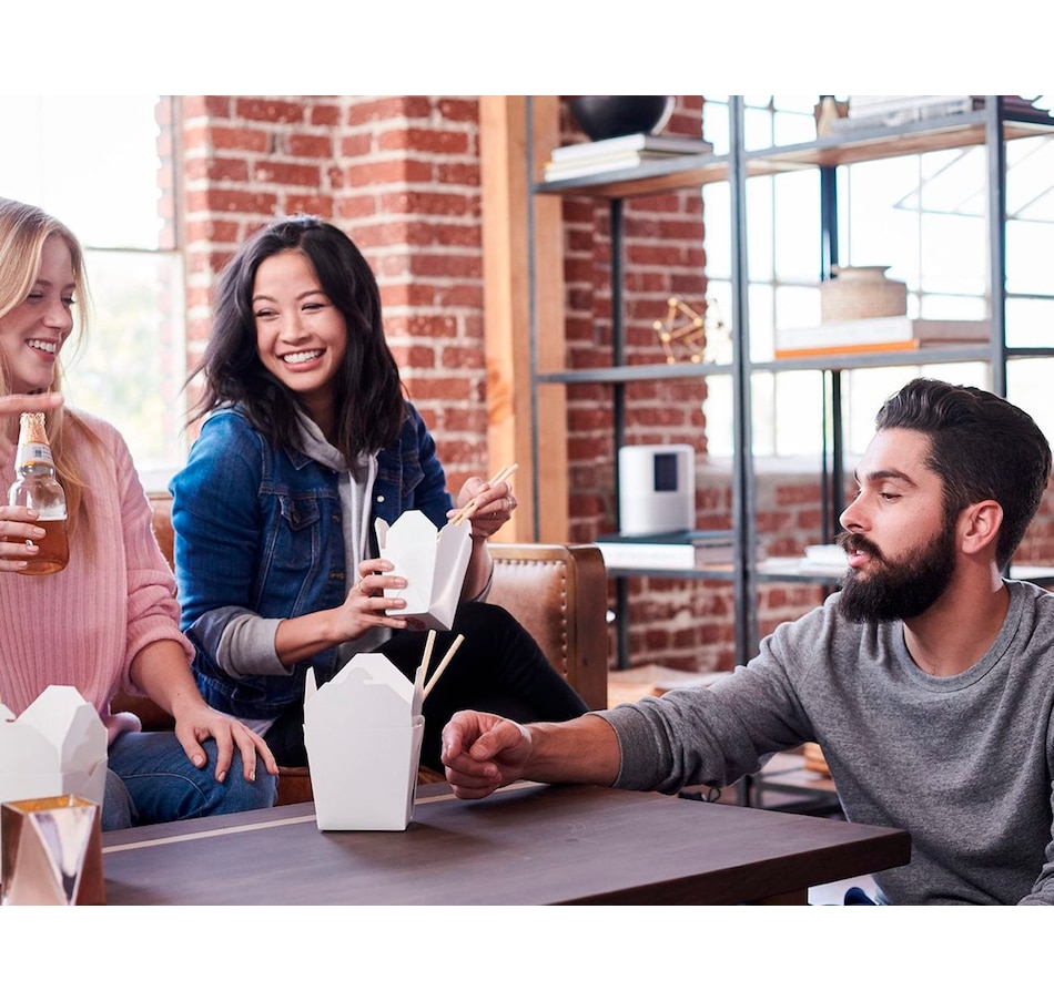 • Experience superior voice pickup from a custom-designed eight-microphone array that hears you over loud music or from across the room