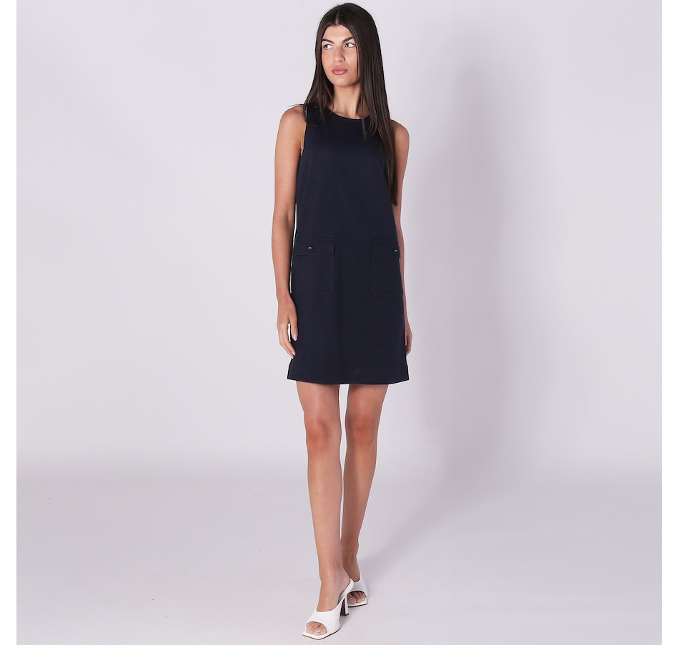 Elevate your look in sophisticated style wearing this gorgeous jacquard knit sheath dress from Badgley Mischka. Chanel inspired, its as simple as it is elegant. It finishes beautifully with a blazer over it, or a small cardigan for a sleek summertime look. The fabric has a great texture, and also features a nautical textured rope accent.