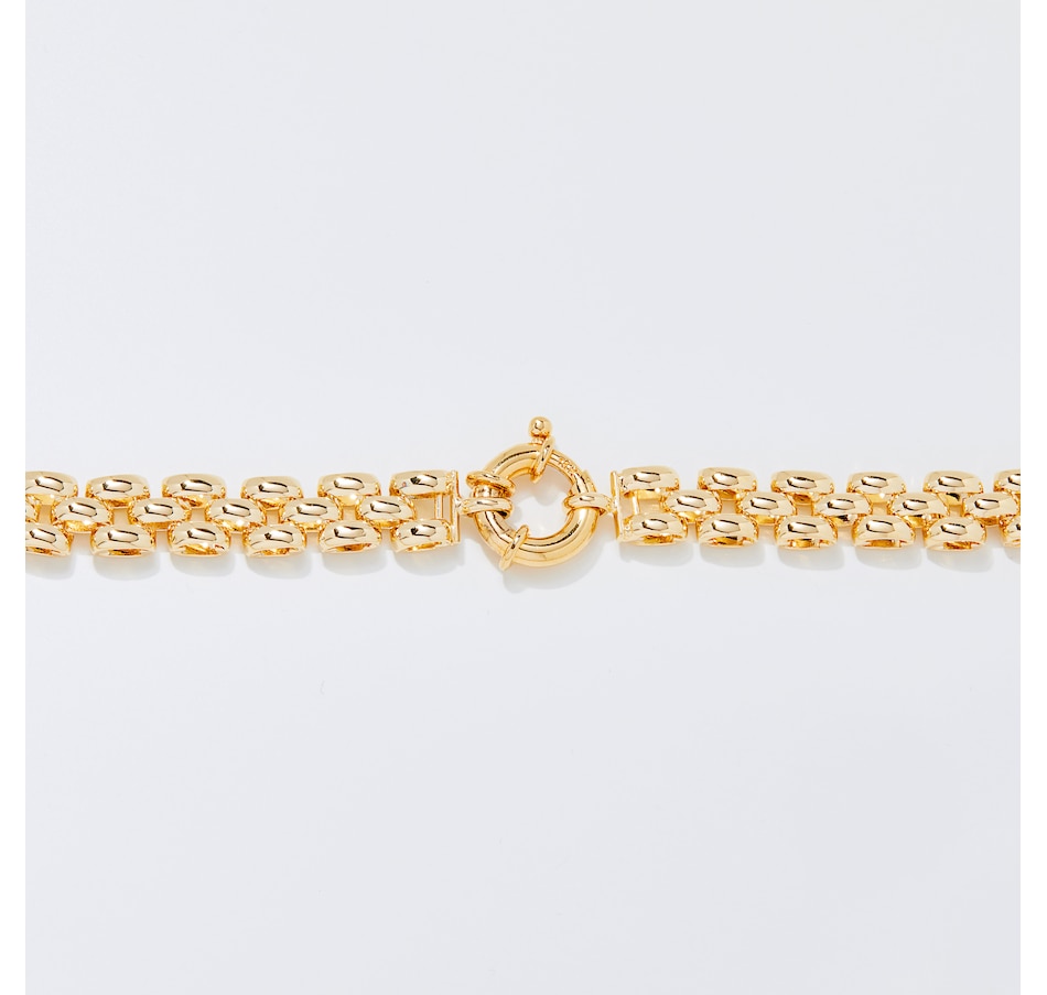 Centre your look in beautiful, distinct style with this gold plated three row Pantera necklace from Bronzoro.