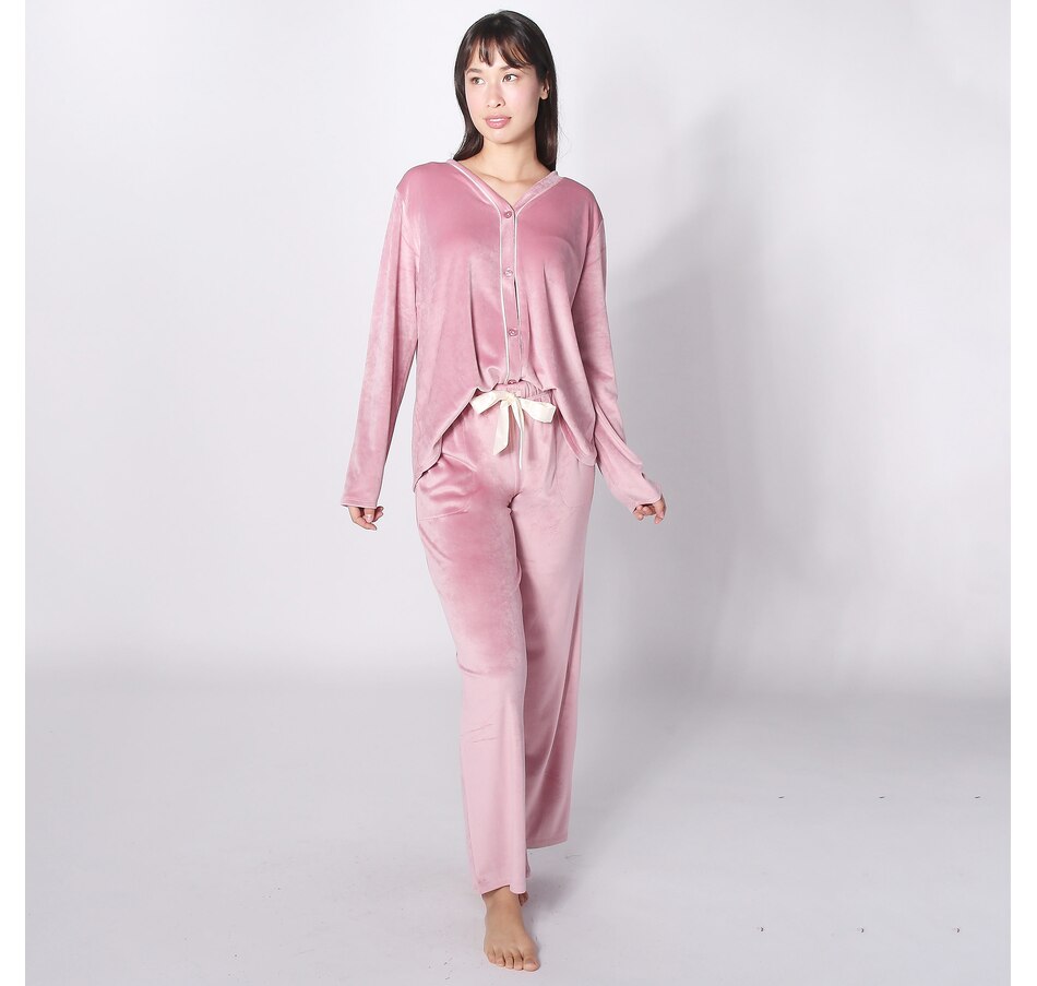 Available in a beautiful range of different colours, you'll elevate your down-time look and comfort with this ultra plush velvet fleece cardigan pajama set from Cuddl Duds.