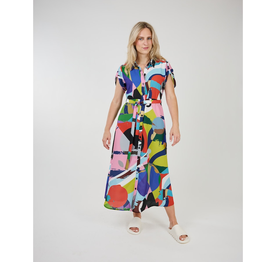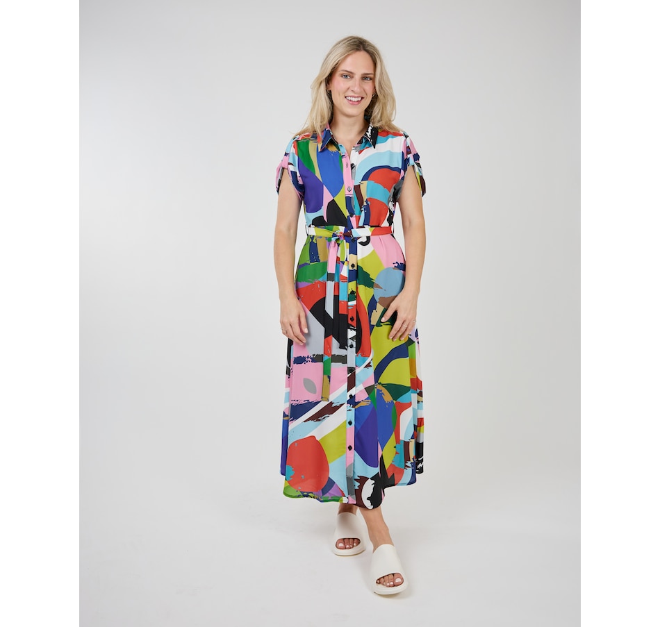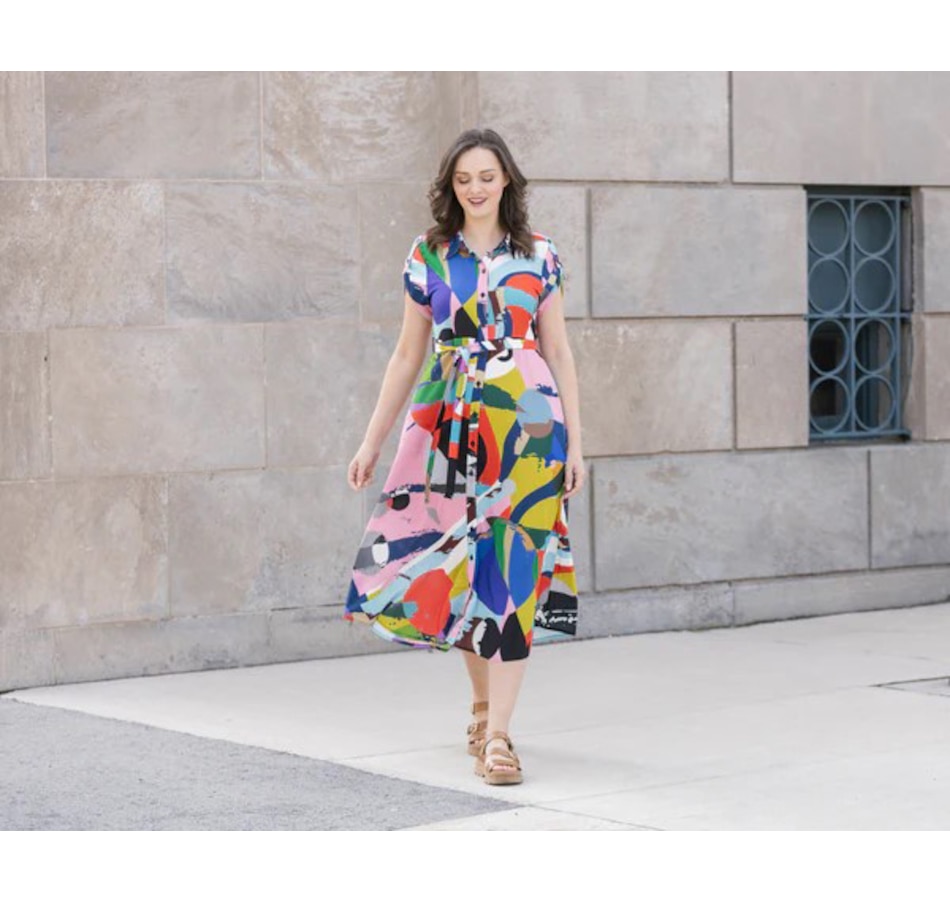 The vibrant and beautiful Sophia dress features stunning prints, front buttons and an adjustable tie belt for the perfect fit. Crafted from their beautiful bubble crepe fabric with a sustainable digital print design, this dress offers versatility at its finest.