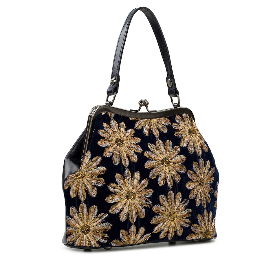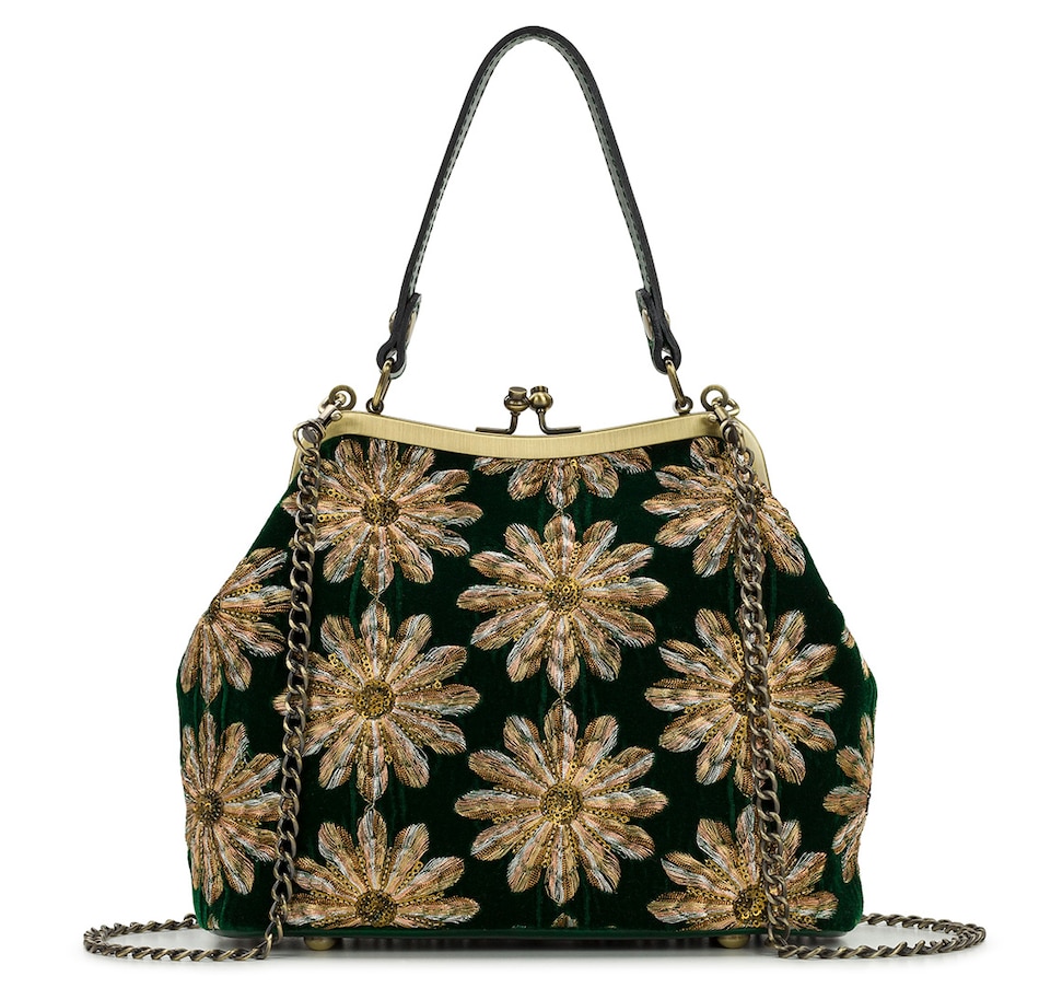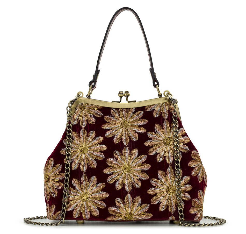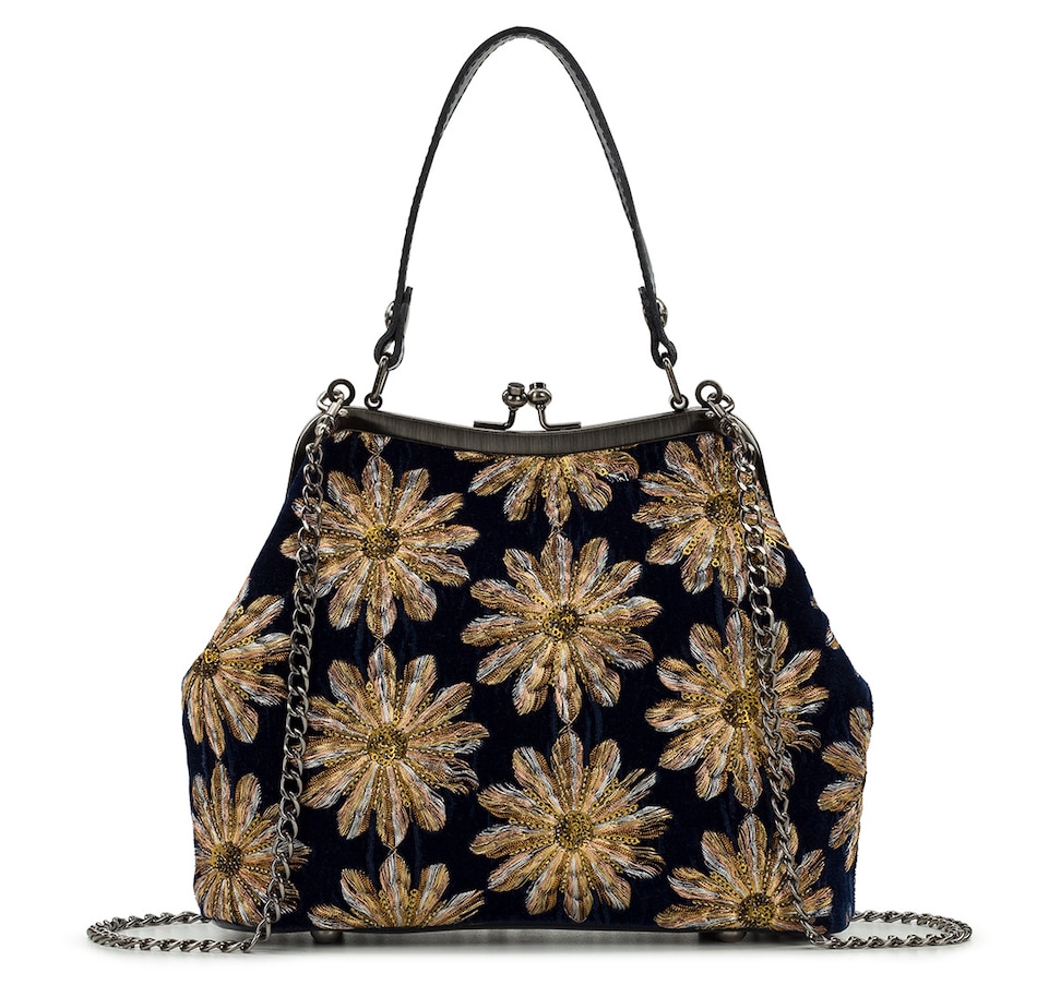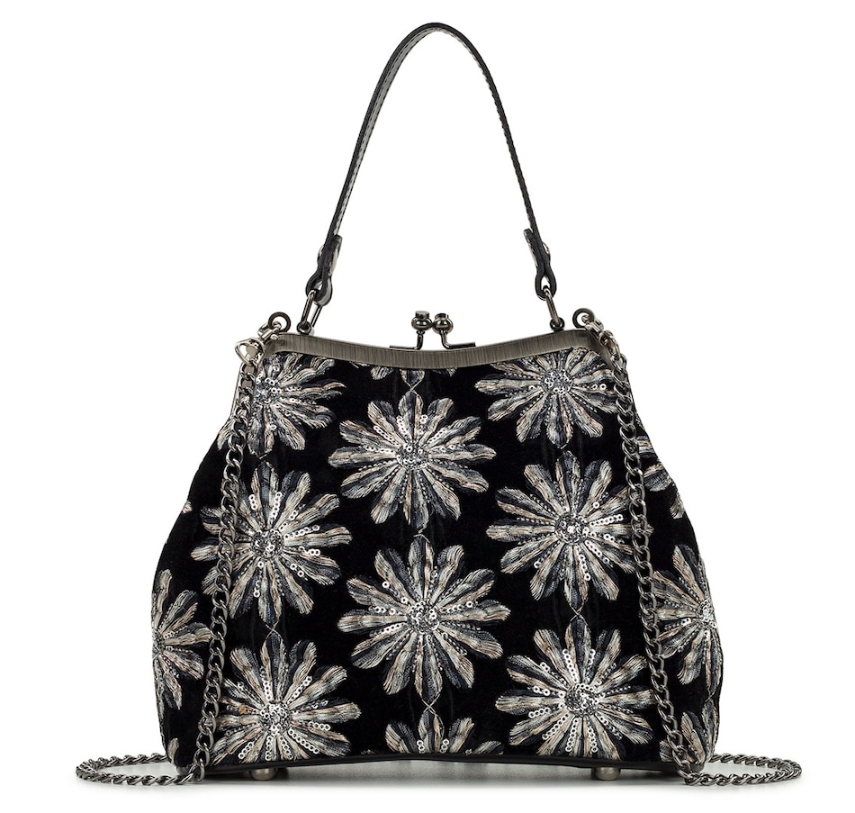 The Laureana frame satchel is a modern classic, and Patricia Nash has designed it in metallic starburst velvet, beautifully reflecting the cool, stunning beauty of a winter's night. Up your accessory game with this compact and charming bag with its appealing chain strap, top handle, and touchable textures. The metal snap closure takes you to an interior that features a back zip pocket and two functional pockets.