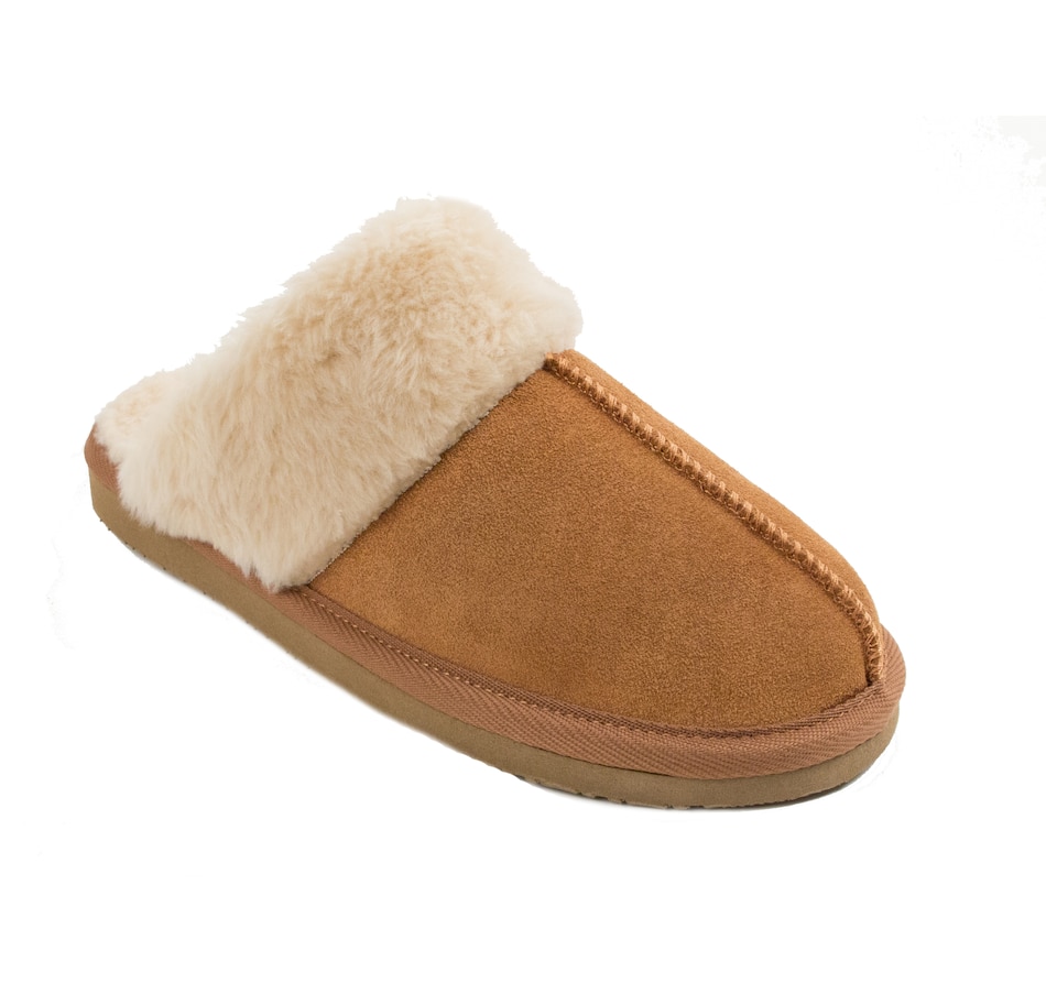 Lounge around in these comfy backless slippers. Pile lining wraps your feet in comfort and warmth. The high-quality suede upper is supple and stands out on the toes. These slippers have thick and flexible soles, so you can wear them inside or out. They're easy to slip on and off when you're ready to grab coffee with friends or walk the dog.